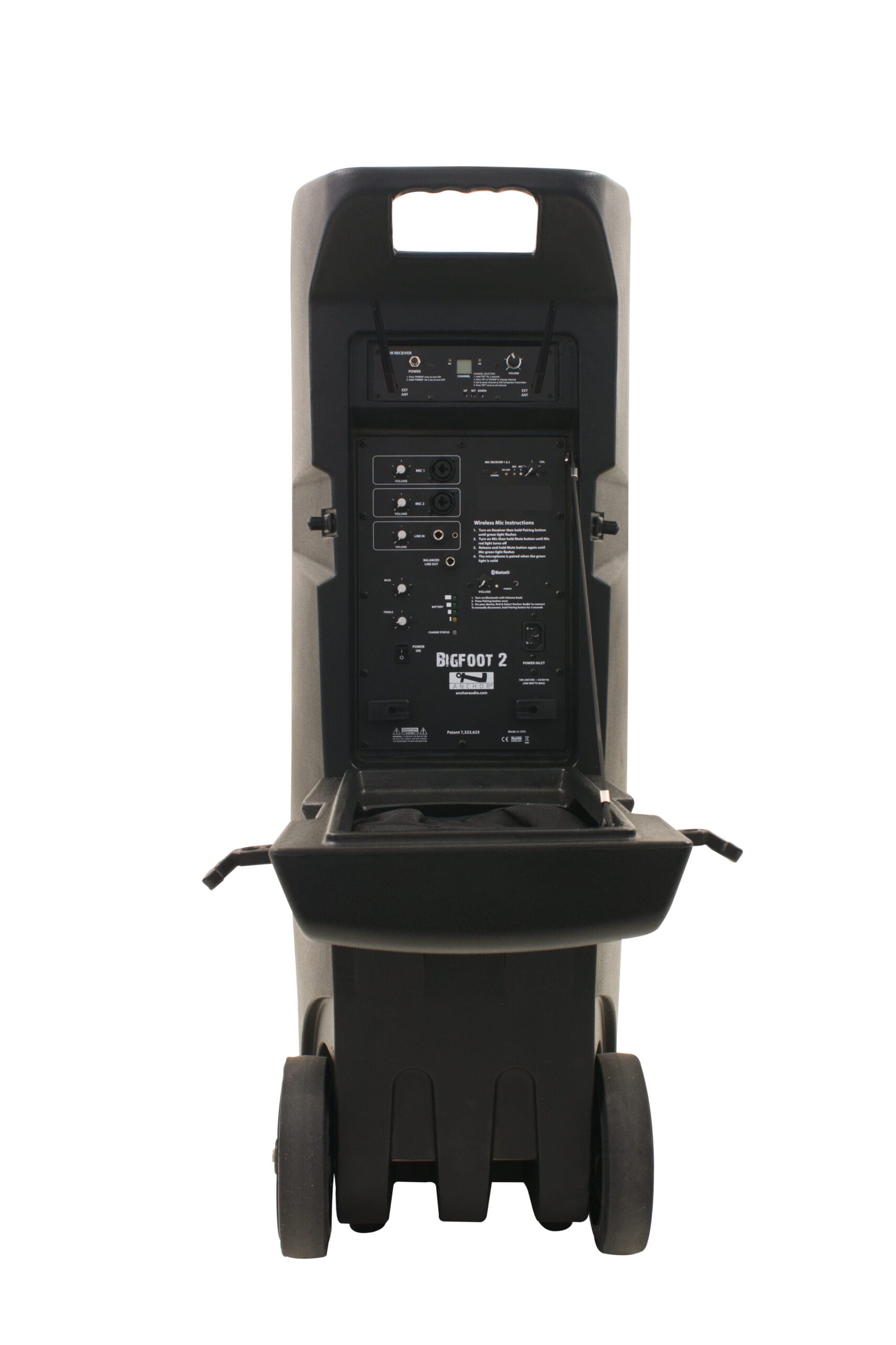 The Anchor Audio Bigfoot 2 with Built-in Bluetooth, AIR Wireless Receiver & Dual Wireless Mic Receiver, Battery Powered Portable PA System features built-in rechargeable batteries that operate 6-8 hours on a single charge along with heavy duty wheels for easy transport. This system is Anchor AIR wireless companion speaker compatible and can also connect up to 4 wireless mics. An onboard mic storage bag is also included with the system and it is designed to cover a football field or large auditorium while reaching crowds of 5,000+.