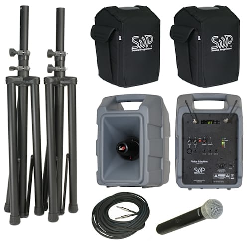 Home » Band and Guard Online Store » Sound Projection VM-2 Deluxe 123-Channel Handheld Wireless with Companion Speaker PA Sound System